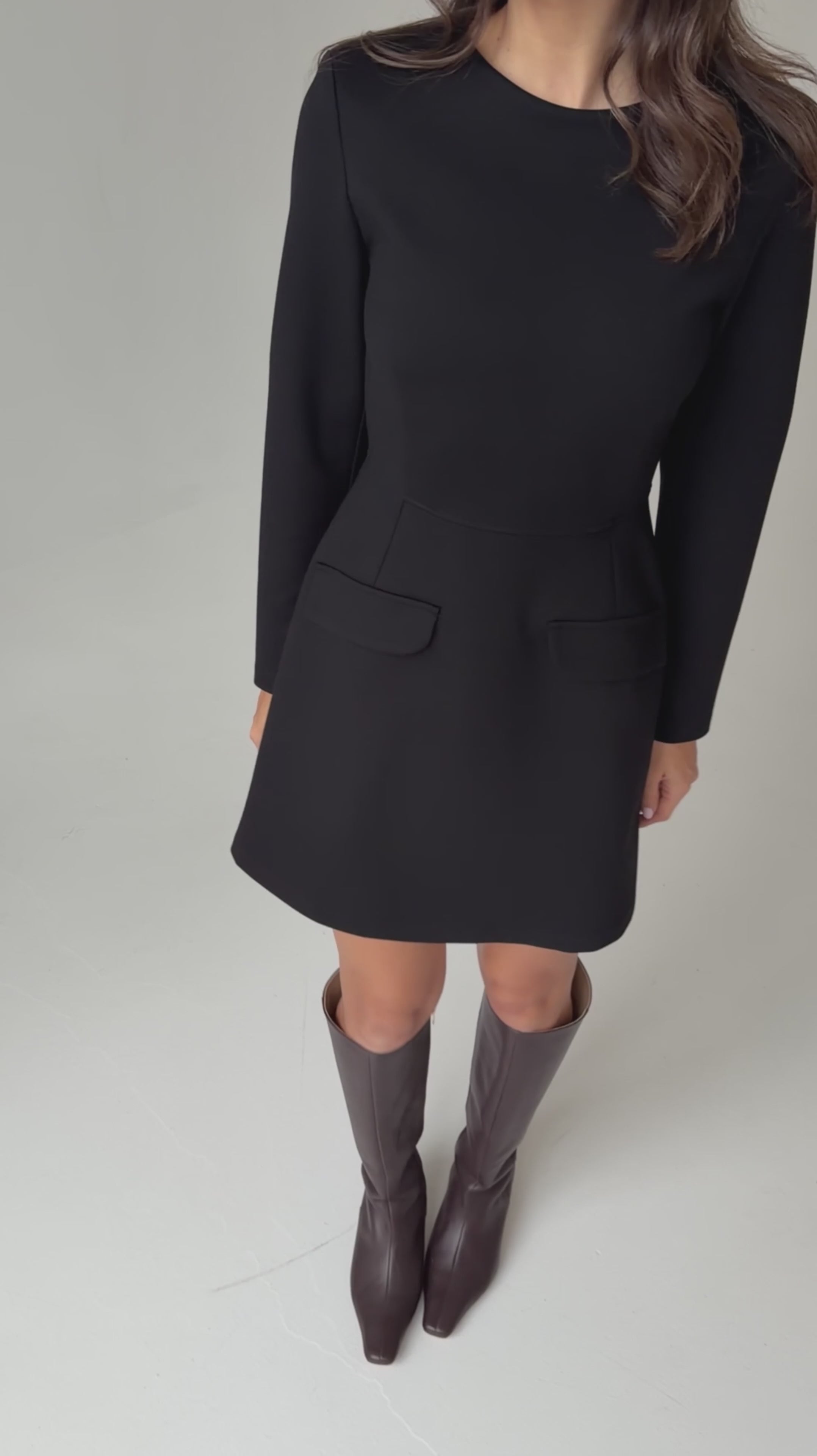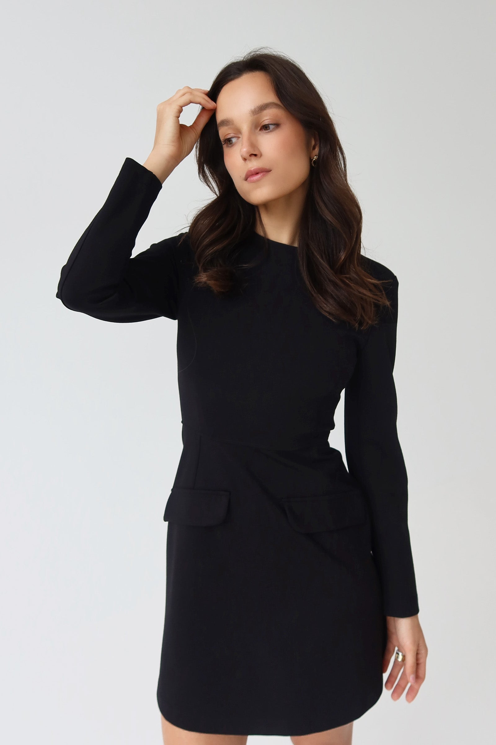 FRANCA mini black dress is a refined essential that belongs in every woman’s closet. Featuring long sleeves and a minimalist design, it's perfect for formal occasions, dinners, or date nights. The dress stands out with subtle details like flap pockets and a beautifully tailored silhouette.