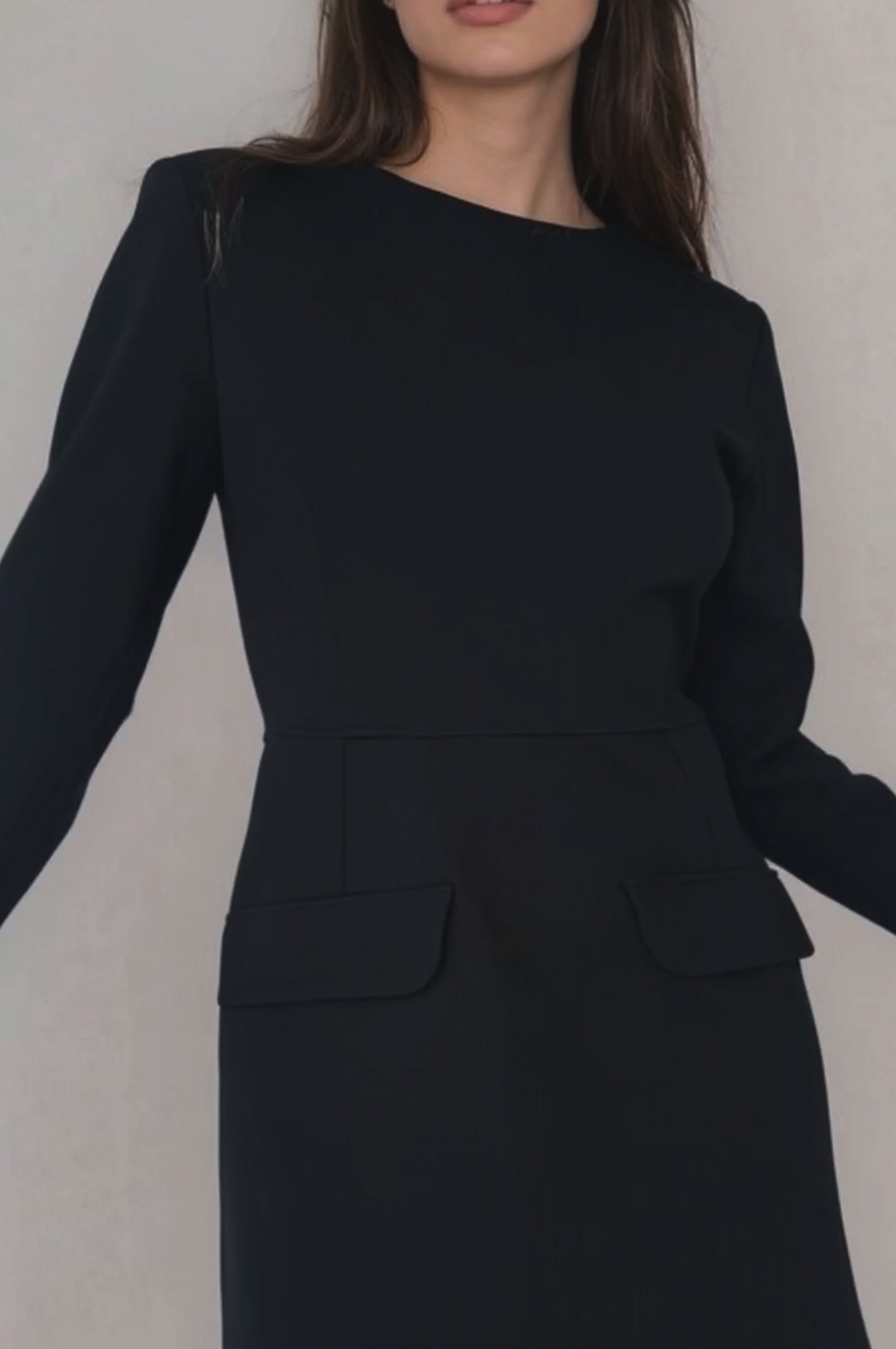 Mini Juoda Suknelė FRANCA, kuri taps nepakeičiama kiekvienos moters spintos dalis. Šis elegantiškas bei modernus siluetas su ilgomis rankovėmis ir minimalistiniu dizainu puikiai tiks tiek oficialioms progoms, tiek subtiliam kasdieniam įvaizdžiui. Suknelės akcentai: atvartinės kišenės, tobulai priglundantis juosmuo bei užtrauktukas nugaroje.
