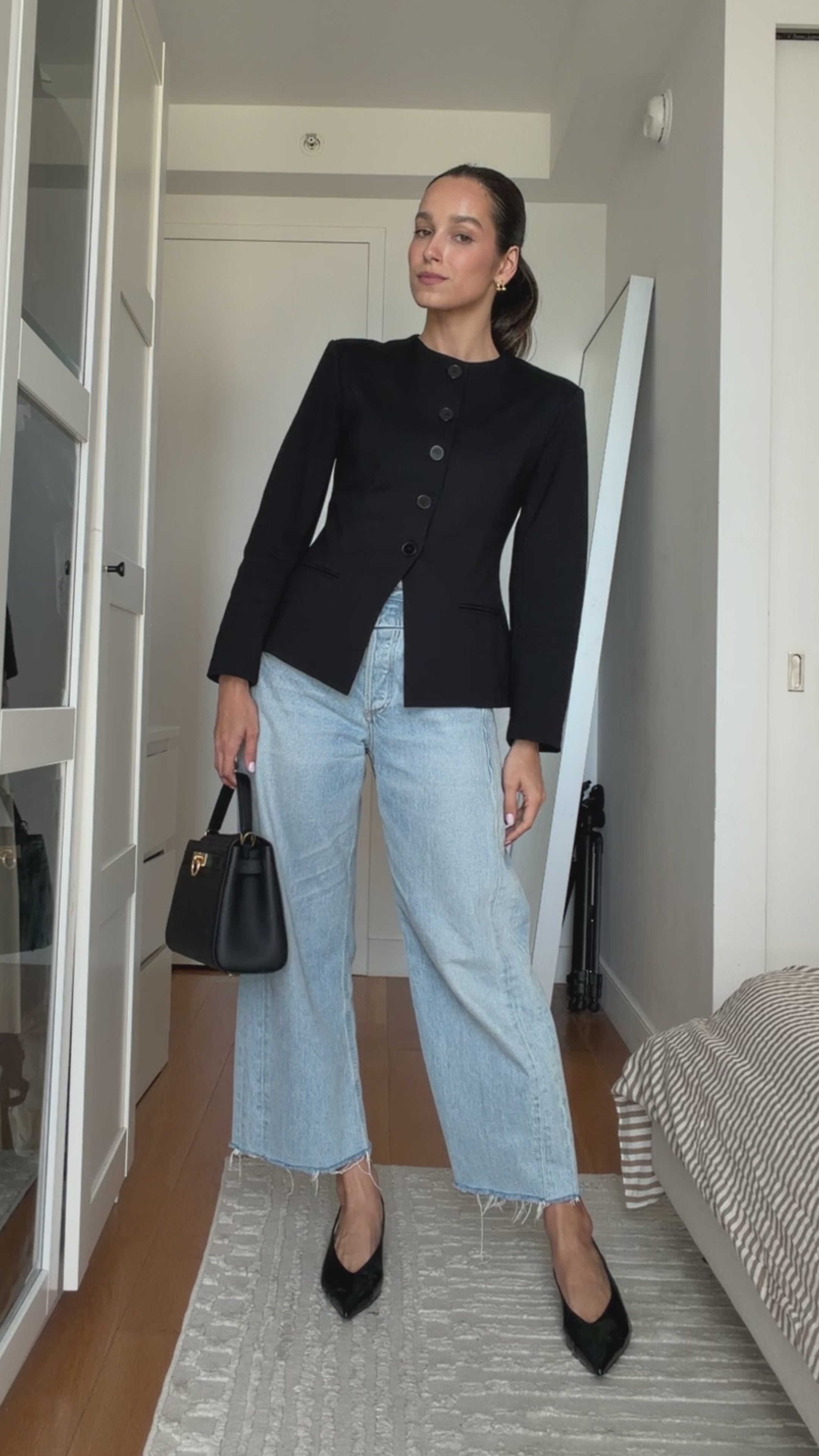 Harper tai itin universalus švarkas pasiūtas iš standaus, tamprumo turinčio trikotažo, kuris leidžia judėti laisvai, tačiau išlaiko tvarkingą ir elegantišką formą. Lengvai išformuota liemens sritis ir dekoratyvios kišenės priekyje kuria dailią figūros formą, todėl švarkelis lengvai derinamas tiek darbui, vakarui, tiek kasdieniam stiliui. Derinkite su kelnėmis, džinsais ar suknele - tai universalus drabužis įvairioms progoms.
