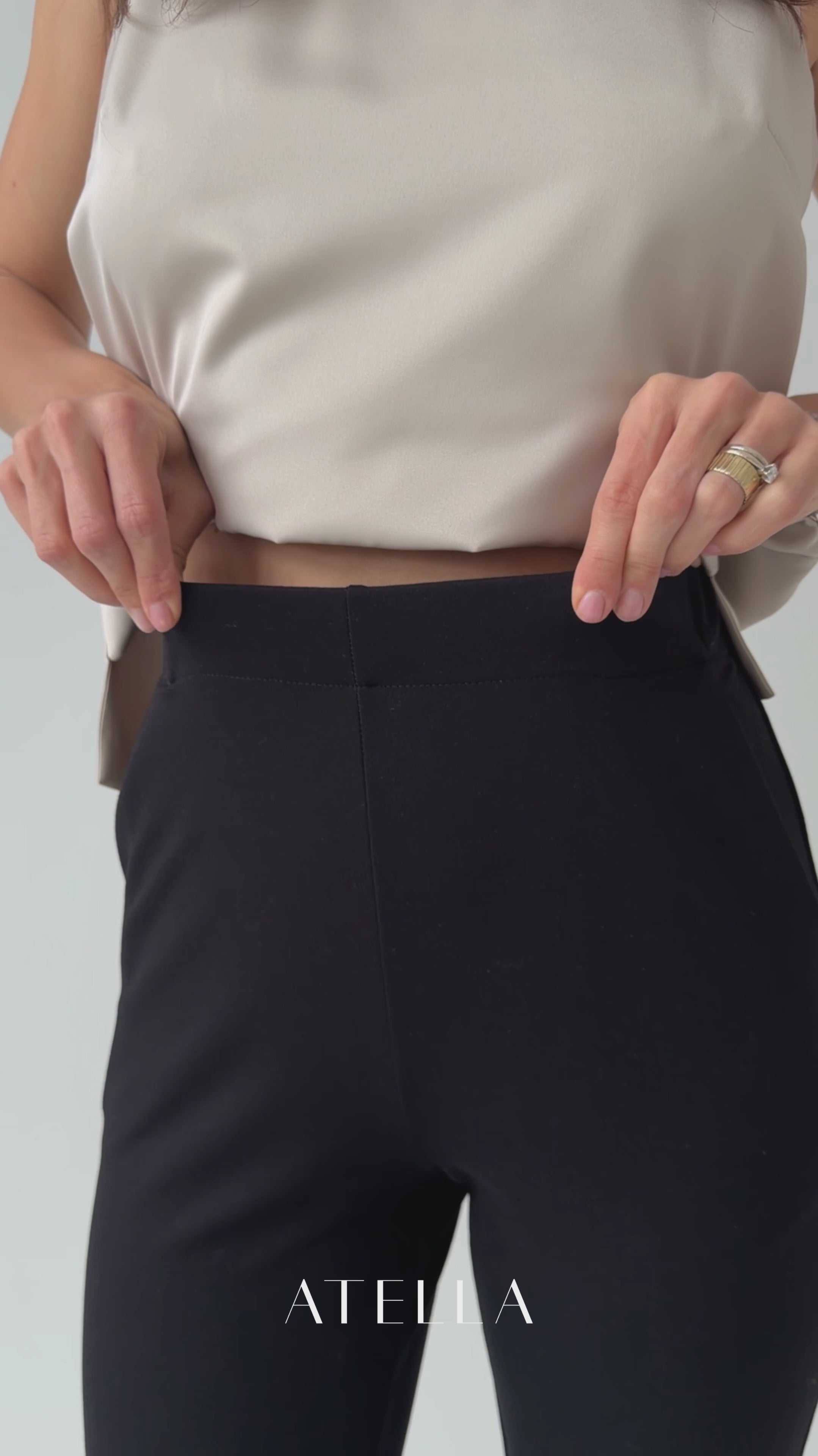 Fiji kelnės pasižymi elegantišku ir patogiu, standaus trikotažo audiniu. Šio audinio kelnės atrodo elegantiškai ir tvarkingai, tačiau nevaržo judesių ir išlieka patogios visą dieną. Juosmens nugarinėje dalyje yra įsiūta guma, kuri suteikia visapusiško tamprumo.